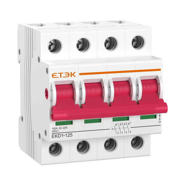 EKM1-125系列小型隔離開關(guān)適用于交流50Hz,額定電壓230V/400V,額定電流至125A的商業(yè)辦公樓、民用住宅及?般工業(yè)用途的終端配電線路中,作為終端組合電器中的總開關(guān),也可用于不頻繁控制各類小功率電器和照明。