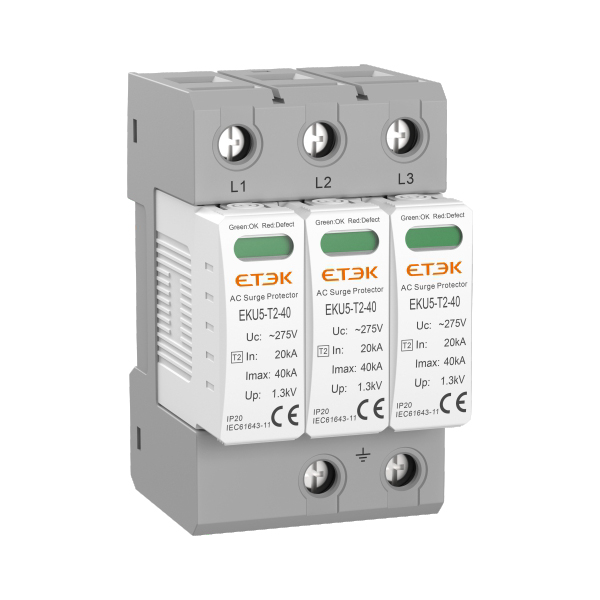 EKU5-T2適用于交流50/60Hz,額定電壓為單相 230V/三相400V的配電和控制系統(tǒng),滿足電涌保護器(SPD)II級試驗,用于抑制瞬態(tài)過電壓低于設(shè)備耐沖擊過電壓,泄放電涌能量,從而保護系統(tǒng)電路及設(shè)備。